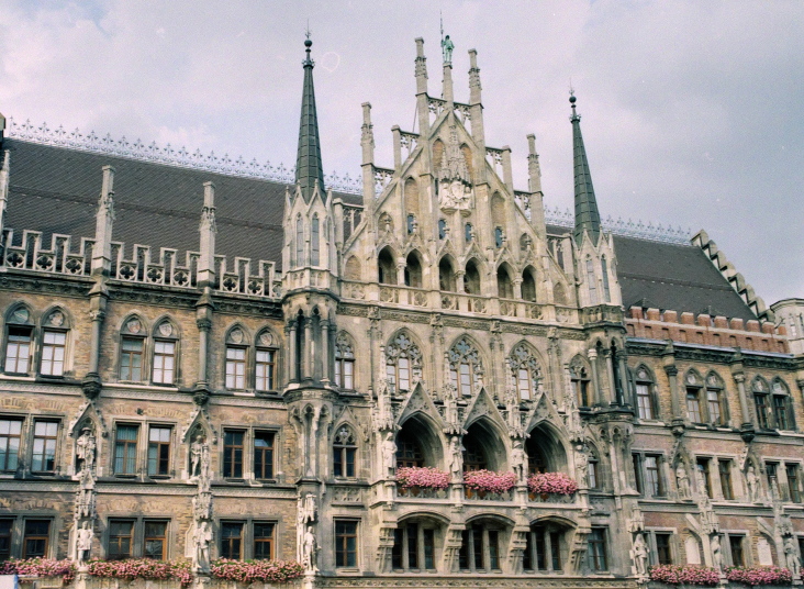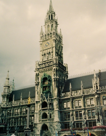 マリエン広場にあるミュンヘンの新市庁舎 ネオ・ゴシック様式の建物。ドイツ最大の仕掛け時計があります。 |