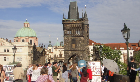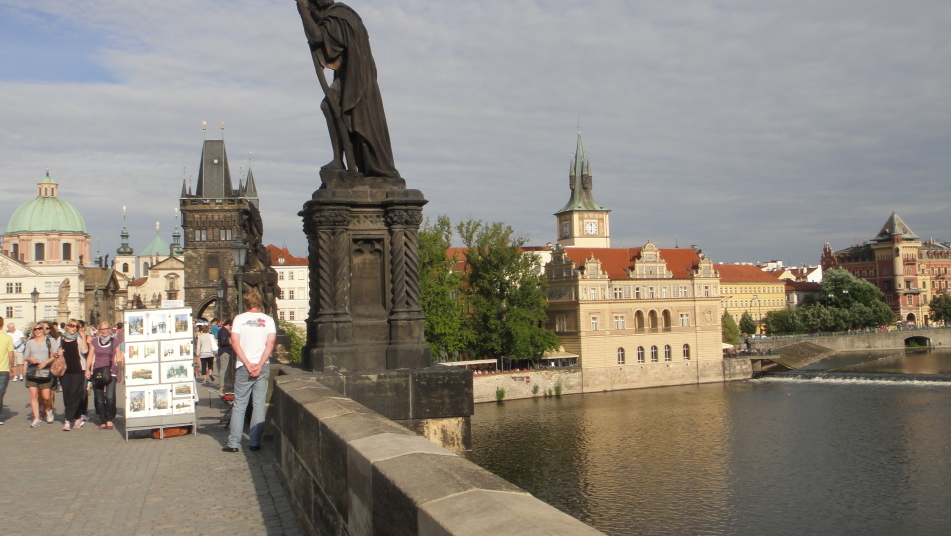 ・モルダウ川が市の中心を流れ、ゴシック様式のカレル橋が架かっております。橋の上ではスタンド露店、芸人等が集まり、多くの観光客でにぎわっています。