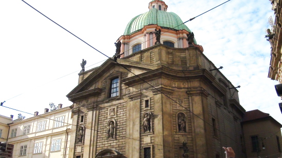 この教会はプラハの旧市街とモルダウ川を挟んで対岸にも同名の教会があり、区別されています。