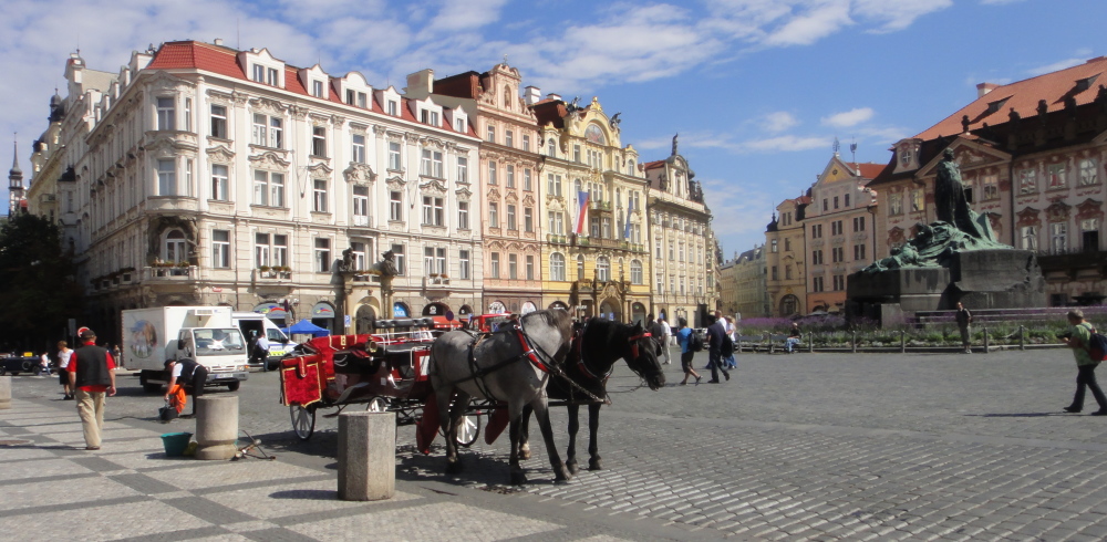 国境付近の丘陵地帯を通り抜け、豊かな田園風景は眺めながら4時間位でプラハに到着しました。