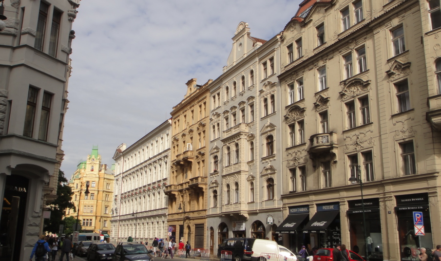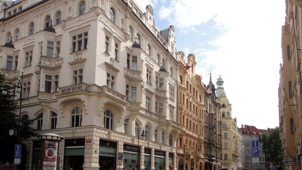ツェレトナー通り(Celetná)と共和国広場(náměstí Republiky)を結ぶ歴史的な通りです。クラーロッドヴォルスカー通り沿いや、そのすぐ近くには、プラハを代表する建築物が並んでいます |