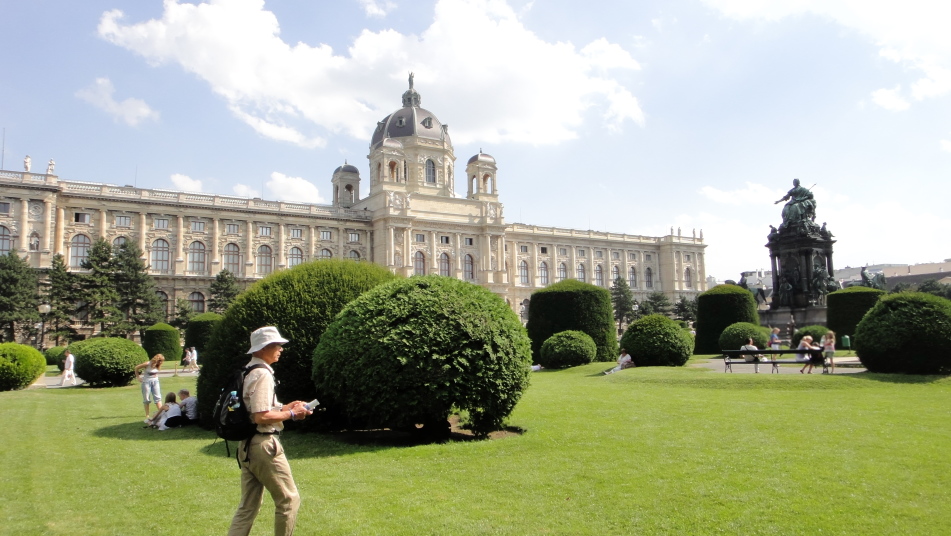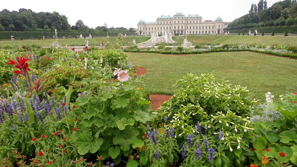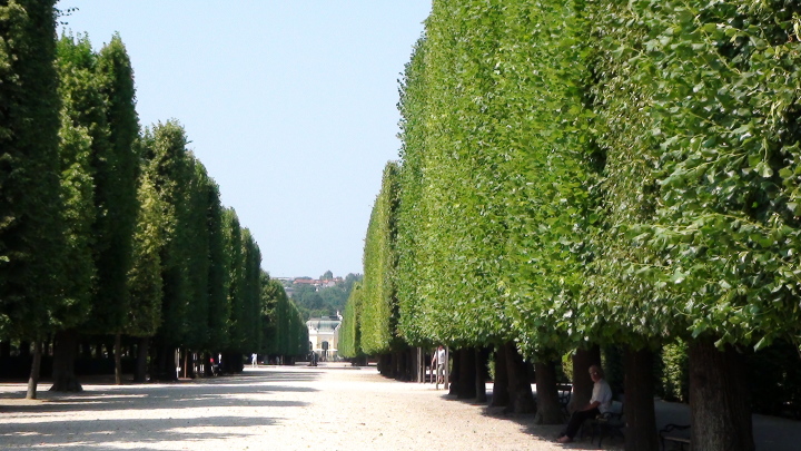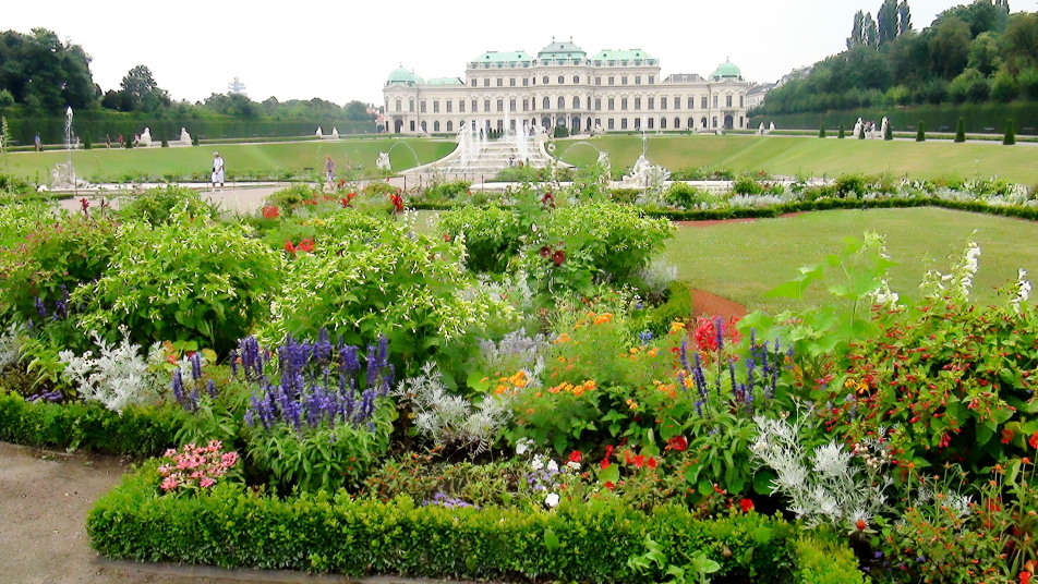 シェーンブルン宮殿は、ハプスブルク家の夏の離宮として使用されていました。宮殿の前には、幾何学的に配置されたフランス式の広大な庭園が広がっています。 |