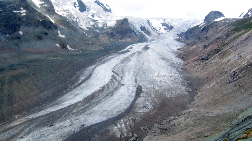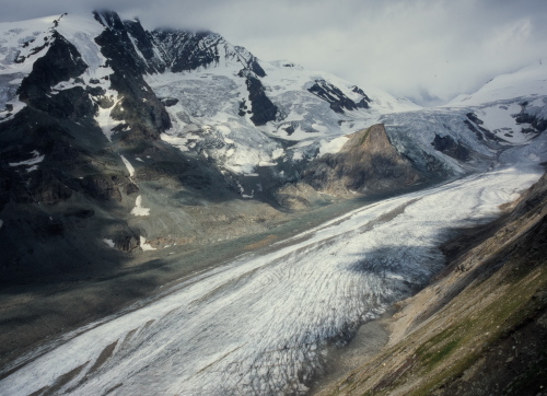 パステルツェ氷河の舌先、真正面より氷河越しに見るグロースグロックナーの壮観は、圧倒的な迫力が有ります。