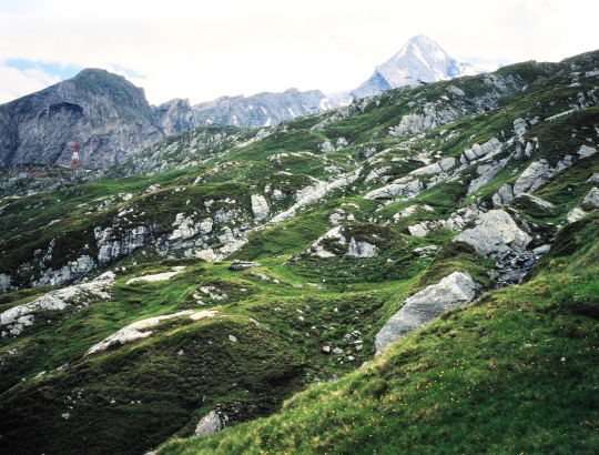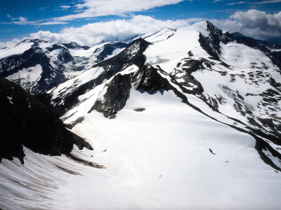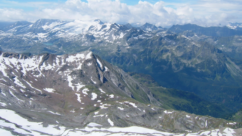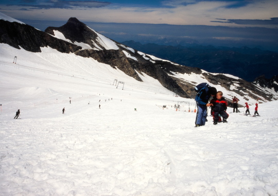 今まで尾根越しに見えなかったグロースグロックナーGroβglockner3798mが見られます。キッツシュタインホルンKitzsteinhorn(3203m)の頂上はもう目の前、手の届きそうな距離に有ります。