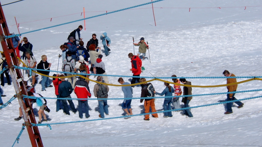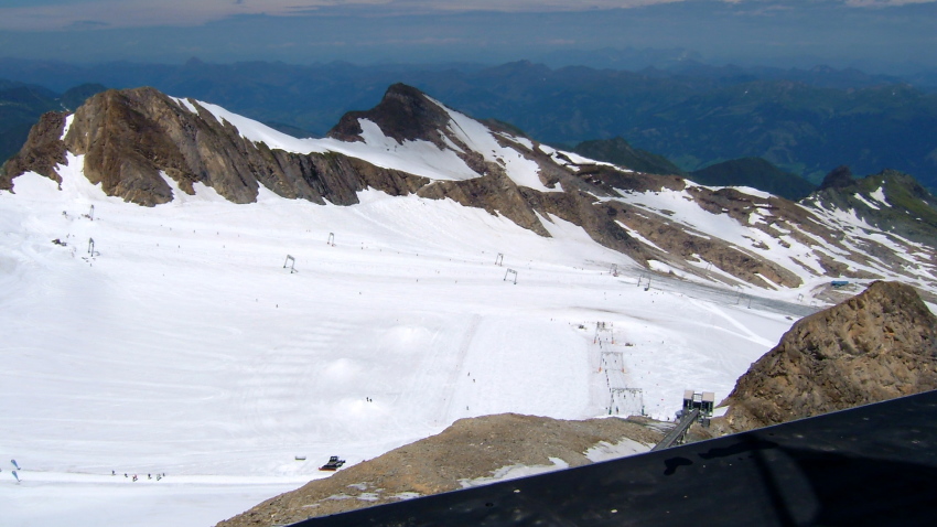 キッツシュタインホルンの氷河の上では夏スキーを楽しんでいる人達が沢山います。