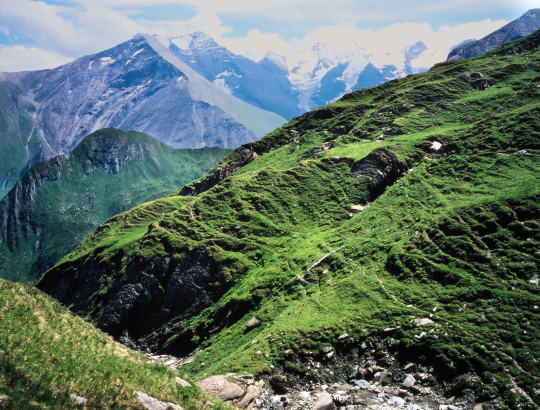 このキッツシュタインホルンから、麓のロープウエーまで歩く幾つかのトレッキング・コースがあります。