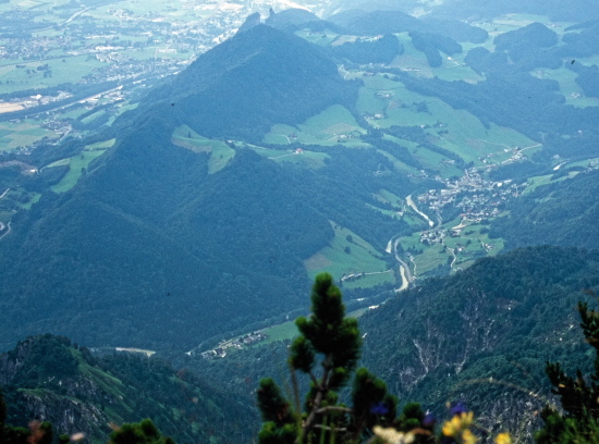 ここからは、ザルツブルグ市を一望する事が出来、南東にダッハシュタイン山群、その右にテンネン山群、ハーゲン山塊更にドイツのヴァッマン2713m等ザルツブルグの名峰が見られます。