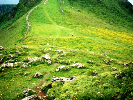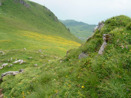 キッツビューラー・ホルンへは、観光客が多く来ますが、平日だったからでしょうか、ハイキングする人は少なく、この日は、広大なアルプの花畑で数組のハイカーに出会った位でした。
