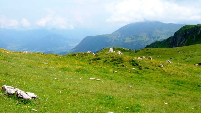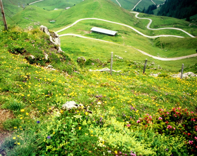 「皇帝山脈」と言う意味のカイザーゲビルゲKaiser Gebirgeの荒々しい山容を見ながら、高山植物が咲き乱れる穏やかな高原をハイキングしていると、時間の経つのも忘れてしまいます。