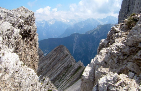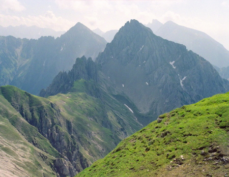 但しこの岩場の登りは距離的には短く、ライターシュピッツェReitherspitze(2374m)の山頂に到着します。山頂からの景色は、息を呑む程素晴らしい眺めです。