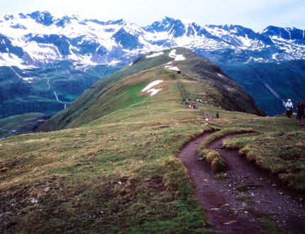 ザルツブルグ州との境にあるキッツビュールにはキッツビューラー・ホルン1996mに快適なトレッキング・コースが有ります。山頂よりビヒルアルムへのトレッキング・コースは、アルプに 咲き乱れるお花畑の中をのんびりと歩く贅沢コースです。