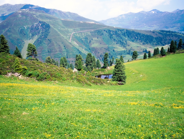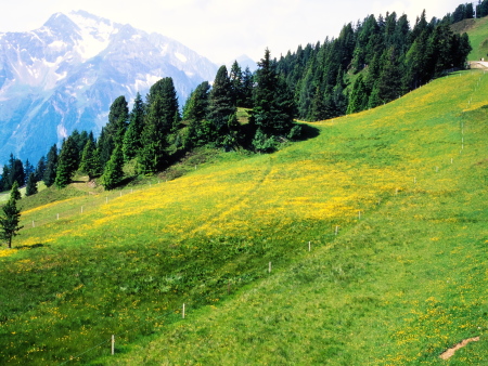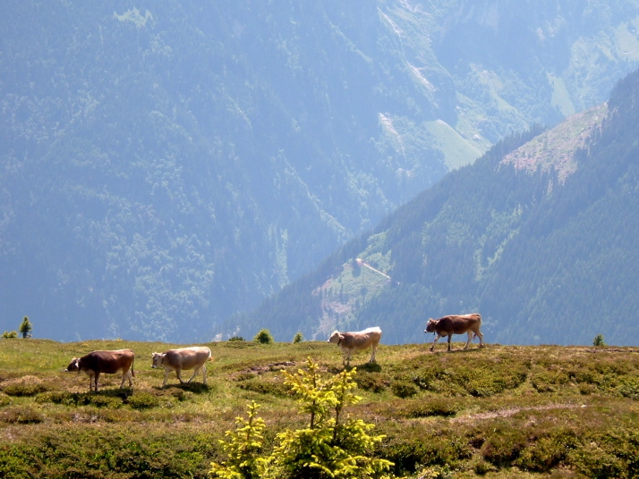 このコースは、眼下にフォーデルラナースバッハの村を見て、牛たちがのどかにアルプの牧草を食べている光景を眺めながら高原を下って行く、のんびりとした気分の味わえる山歩きのコースです。