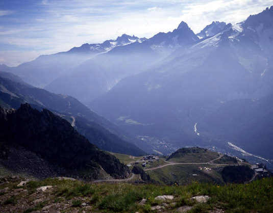正面の突き出た山がシャルドネ針峰(3824m)