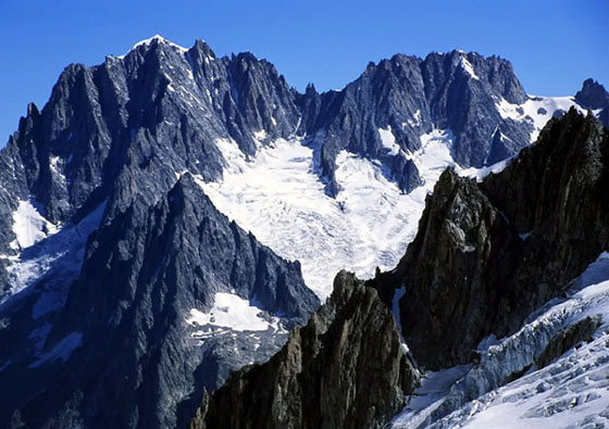 エルブロンネからの眺望 Aiguille Verte(4122m)(左)とTalefre Glacier