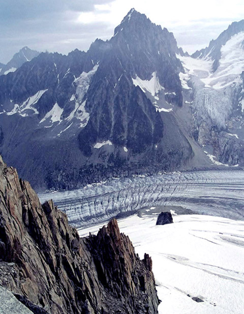 正面の山がシャルドネ針峰 Aig Du Chardonnet(3824m)