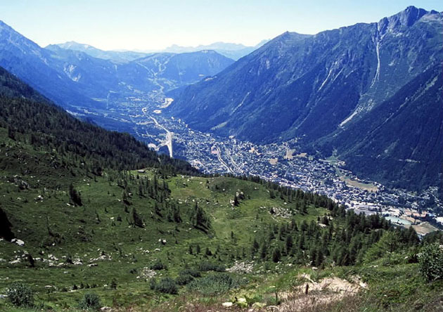 シャモニの町を左手に見ながらハイキング・コースを歩いて行きます。