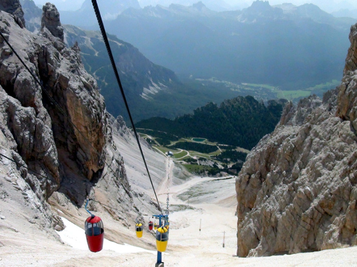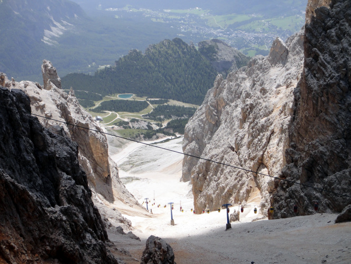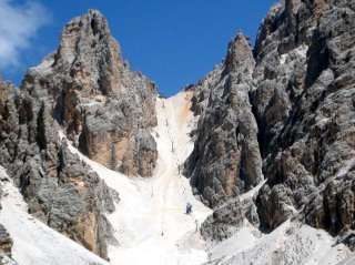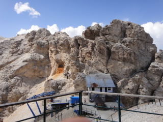 ソン・フォルカ小屋Rifugio.Son.Forcia(2218m)から、リフトで クリスタッロのリフト小屋Rifugio G.Lorenzi(2932m)を目指します。 |