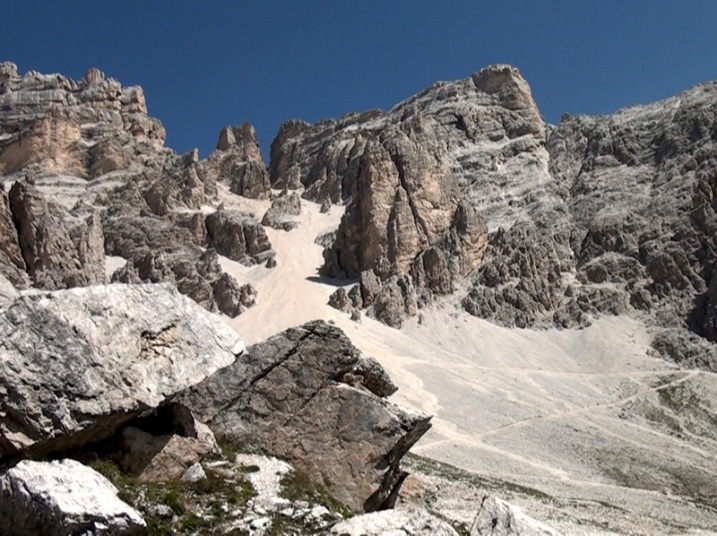 NO403のルートはトファーナ・ディ・ローゼとBus De Tofana3026mの間にある鞍部Rif,Giussaniへ続いています。