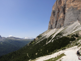 第一次世界大戦時、イタリア軍とオーストリアの山岳兵が戦った塹壕が岩壁に残っています。塹壕には、谷越しに相手側の陣営を見る為に、断崖の岸壁を削った窓が有ります、 |