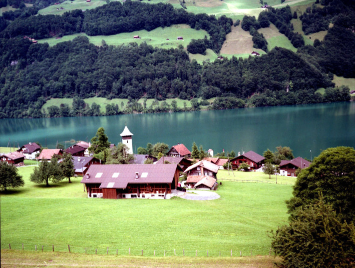 国際空港チューリヒよりグリンデルワルトへは、ルツェルン(Luzern)、ブリエンツ(Brienz)を経由して行くと、車窓より美しいスイスの山村と湖水の風景が展開して行きます。
