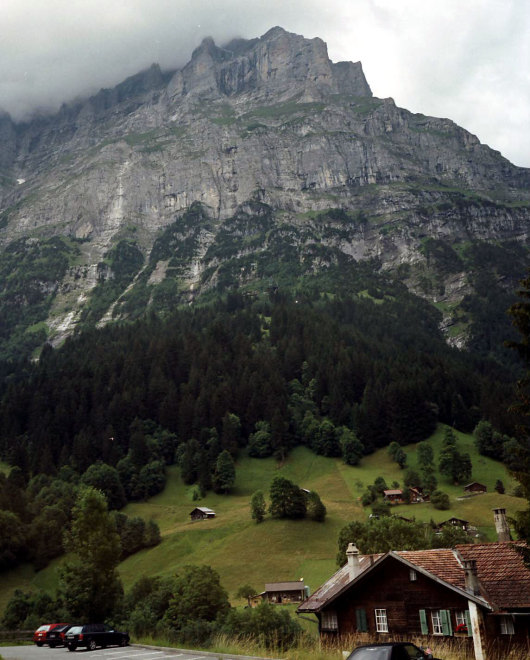 アイガーの麓です。平野の少ないスイスでは、昔より牧草地を造るため極限まで森林を開墾していったそうです。