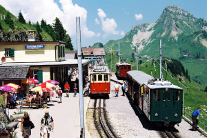 景色に見とれている間にシニーゲプラッテ駅(1967m)に到着です。駅は山の頂上近くの台地のような地形に有ります。