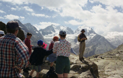 エルヴァー氷河が、目に飛び込んできます。ここより、ロゼック谷への長い下りのトレッキングが始まります。