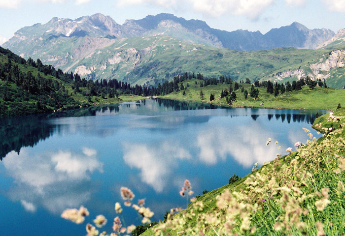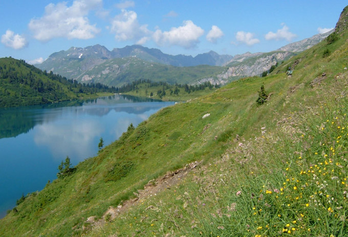 トゥリュプゼーを一周するコースです。このコースは「マウンテンフラワーコースMountain Flower Trail」と呼ばれ湖畔の周囲に美しい高山植物が咲き乱れています。