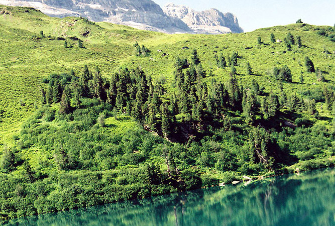 湖の南面には、Wendenstocke3042mを主峰とした山々が屏風のようにそびえています。