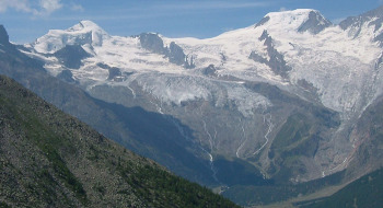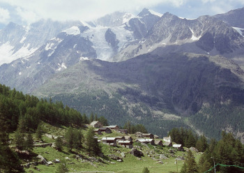 サースタールの東側にサースタールの名峰が有ります。ヴァイスミースWeissmies(4027m)とラッギンホルンLagginhor(4010m)フレッチュホルンFletschhorn(3996m)です。この山塊はサース谷を隔ててミシャベル山群と対峙しています。