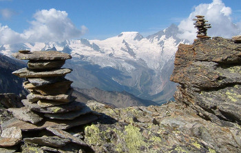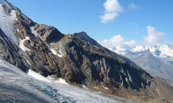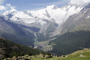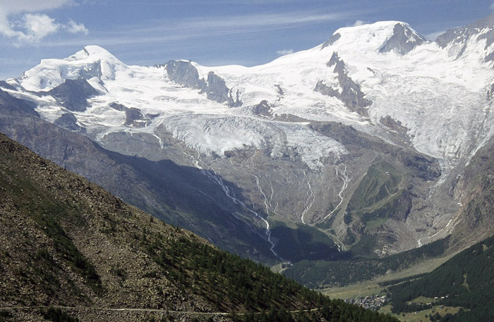 ヴァイスミースWeissmies(4027m)とフレッチュホルンFletschhorn(3996m)の間にホーサスHohsaas3200mという頂があります。ここは、ミシャベル山群の眺望が良く絶好の展望台となっています。