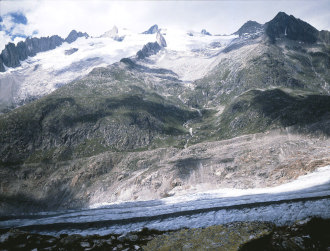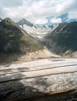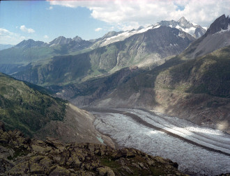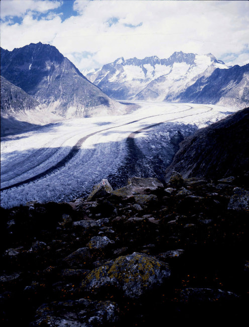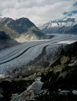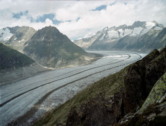 ユングフラウ・ヨッホより見るアレッチ氷河は、定番の景色ですが、実はアレッチ氷河の一部、上流部しか見ていません。