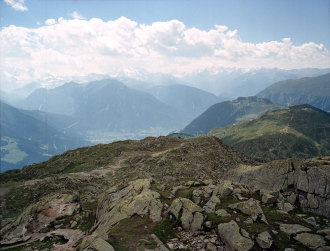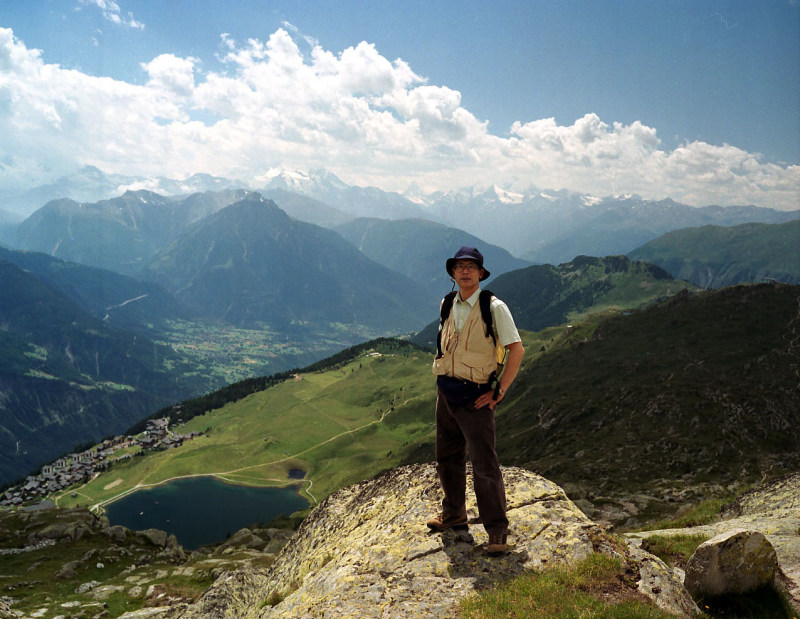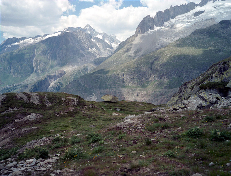このアレッチ地域の尾根筋からは、ベルナー・オーバーランドの山々の南面を見渡すことが出来、また振り返ると逆の方向にミシャベル山群・ヴァリス山群の北面を見渡すことが出来ます。