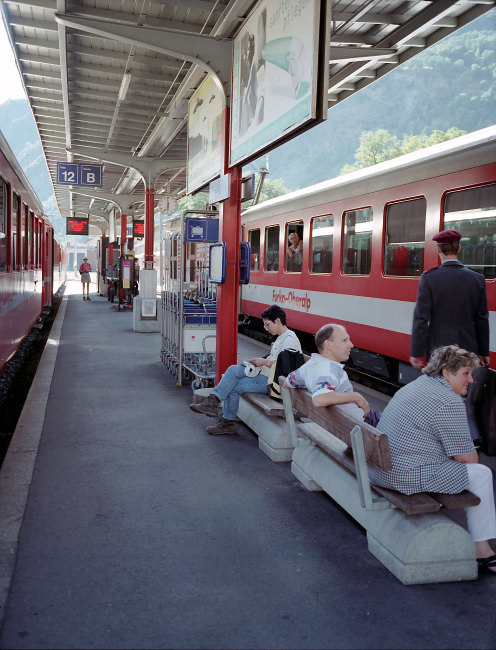 〇ブリーク(Brig)駅を出ると3番目の駅メレル4番目の駅ベッテン更に進んでフィーシュ駅から各々中腹までロープウェイが出ています。更にロープウェイ、ゴンドラリフト等に乗り稜線に出ます。