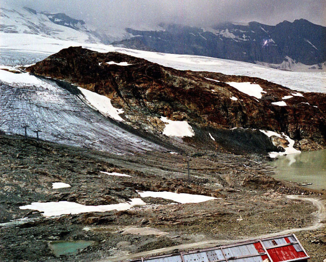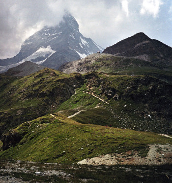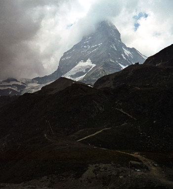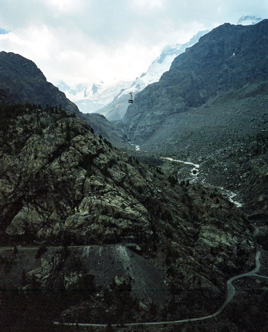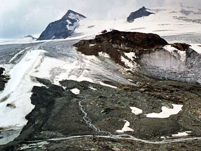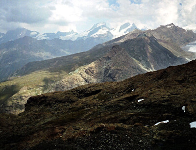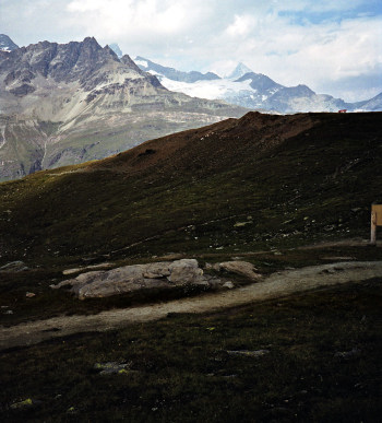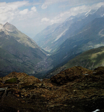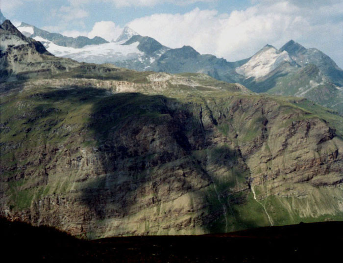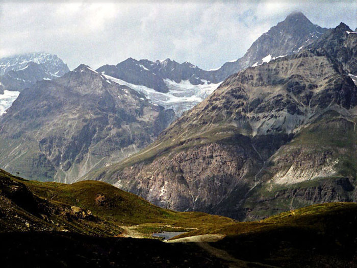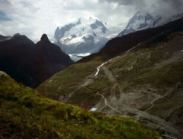 シュタフェルアルプは、ツェルマットの谷を更に登って行くとツムット氷河に突き当たります, その手前のアルプです。丁度写真の谷がシュタフェルアルプです。