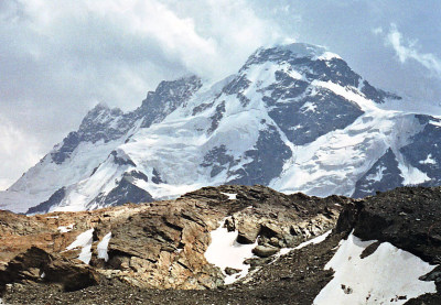 4,063m)です。画面左に遠く雪をまとっている扇のような山容はダン・ブランシュ(Dent Blanche